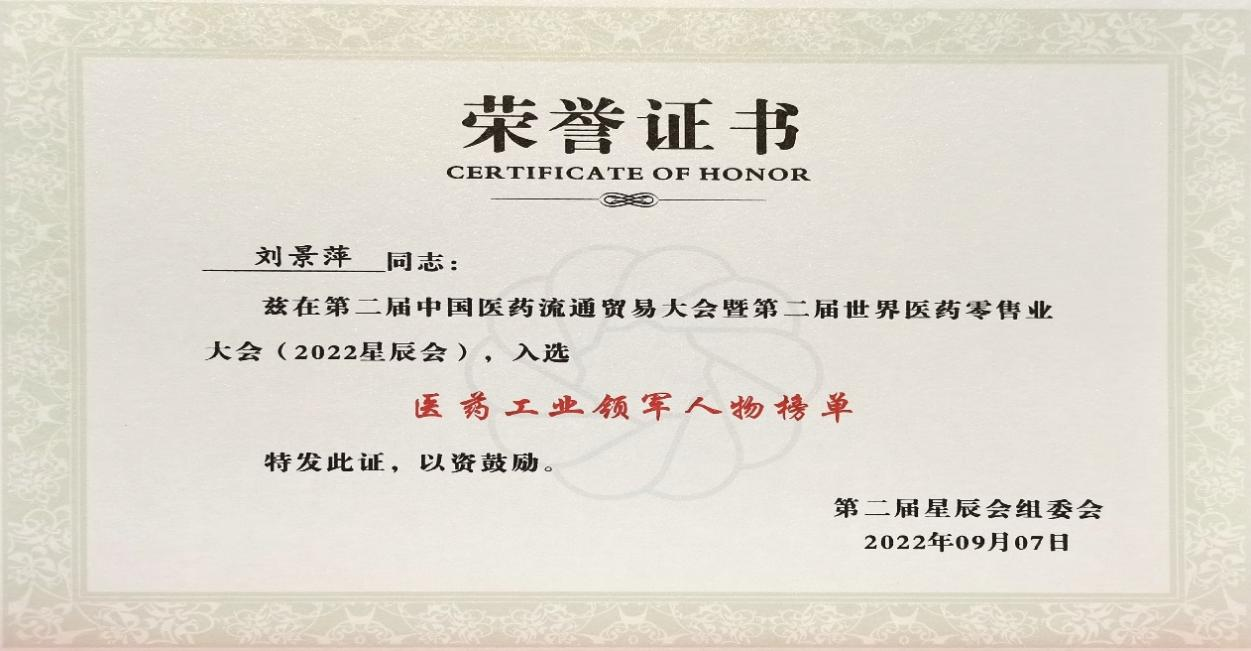 在本次开幕式上,发布了“医药工业领军人物”、“医药零售领军人物”榜单,k1体育药业集团刘景萍董事长凭借在儿药领域多年的努力探索和对行业的杰出贡献,荣获“医药工业领军人物”称号。