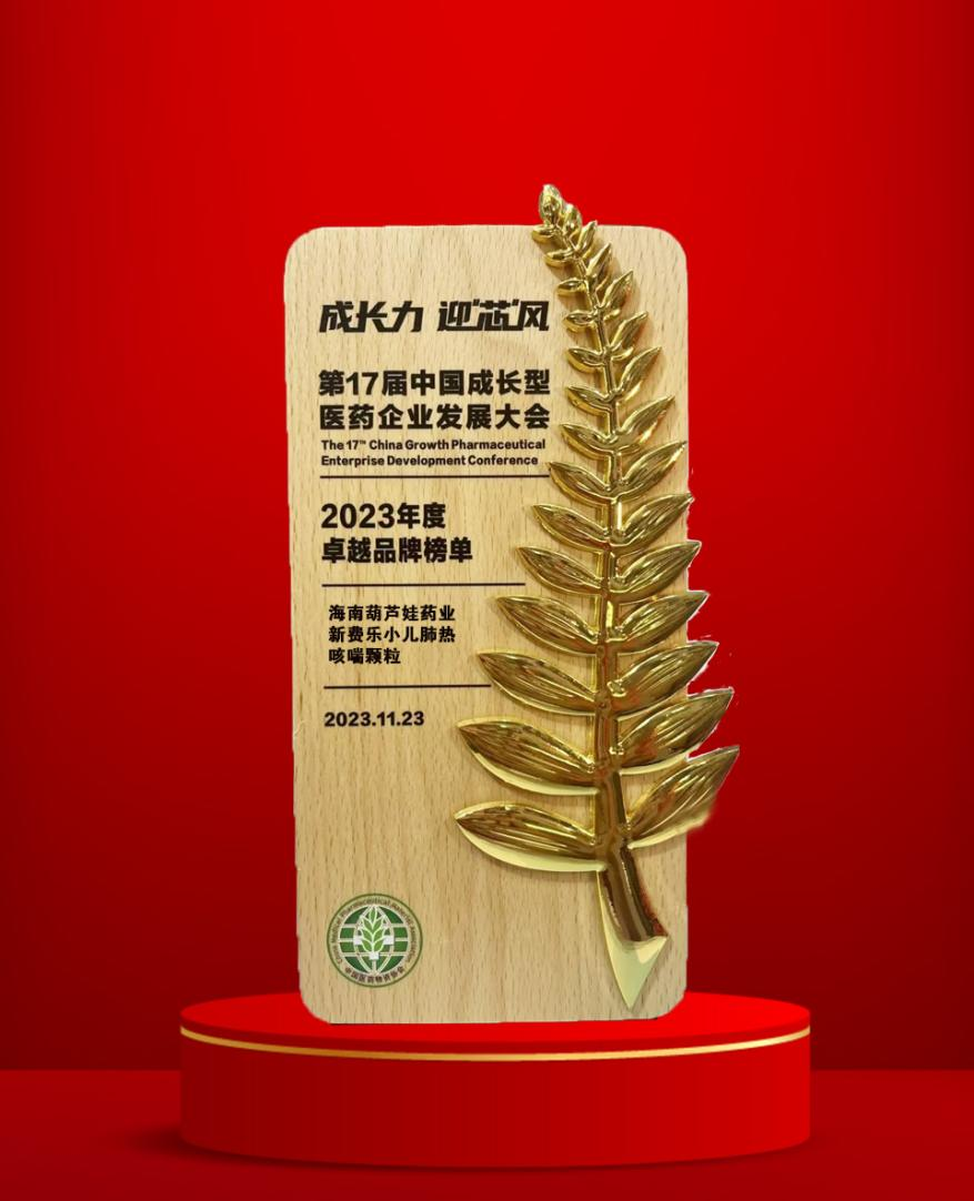 11月22日至25日,由中国医药物资协会和厦门市人民政府主办的第17届中国成长型医药企业发展大会在厦门拉开帷幕。会上,k1体育药业集团党委书记、董事长刘景萍获得“金叶奖·2023年度医药行业风云人物奖”,集团旗下产品新费乐®小儿肺热咳喘颗粒荣膺“2023年度卓越品牌奖”。