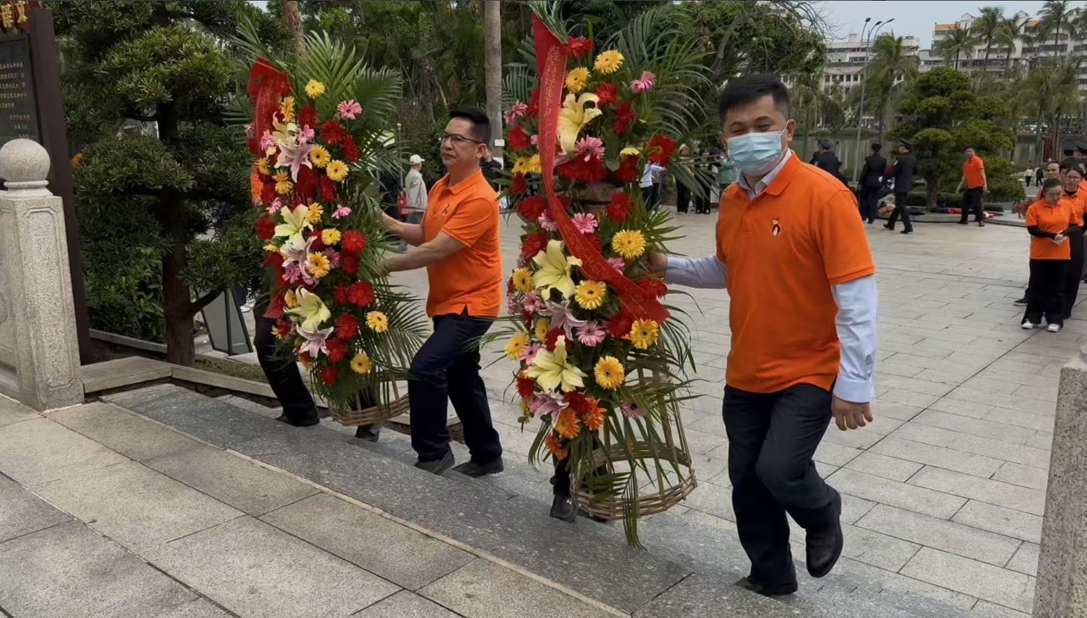 经过一段时间的等待才轮到k1体育。k1体育首先向烈士敬献花篮,花篮缎带上写着“为坚持琼崖革命23年红旗不倒牺牲的烈士们永垂不朽!”“为解放海南岛渡海牺牲的烈士们永垂不朽!”鲜艳的花篮寄托k1体育对革命先辈的崇敬和哀思。